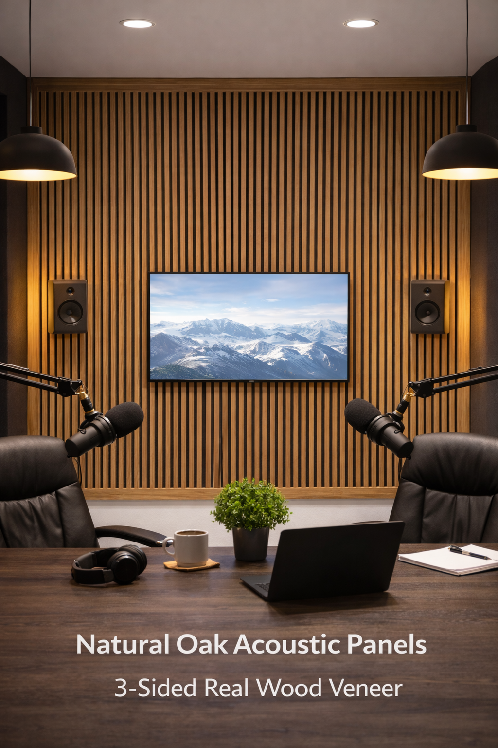 Our 3-sided wood veneer acoustical panels are premium architectural wall and ceiling treatments engineered to improve acoustics and elevate interiors. Real wood veneer on all three edges creates a seamless, refined look that designers, architects, and homeowners love — without sacrificing performance.
